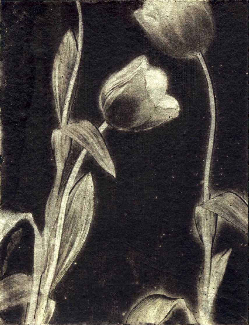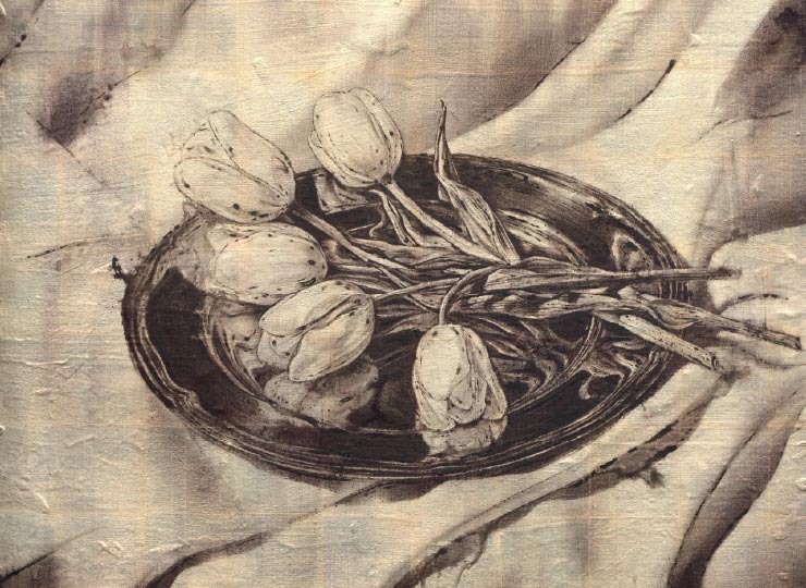 Ink, pigment ink, watercolor on silver foil, jangji paper